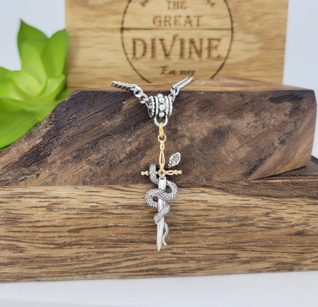 Sterling Silver Sword Necklace, Mixed Metal Sword Charm, Dainty Sword Necklace