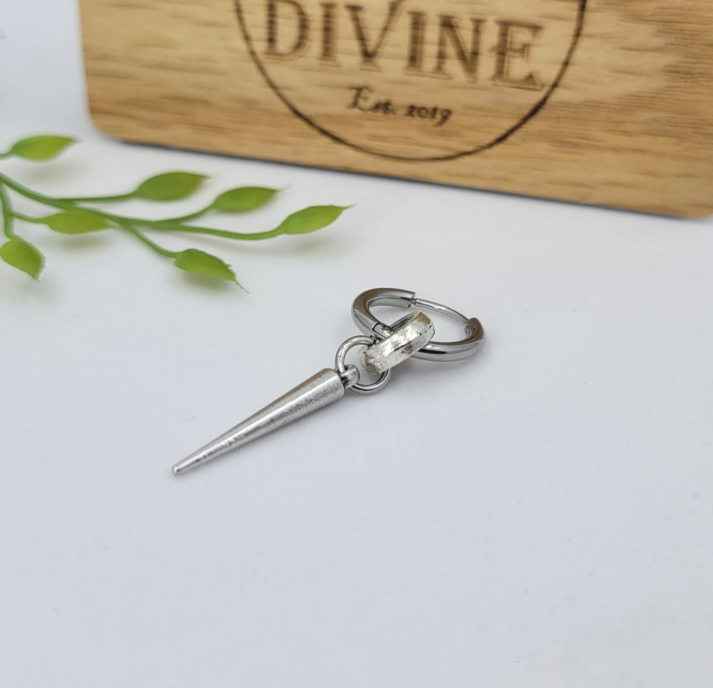 Stainless Steel Long Spike Dangle Earring: Men's Geometric Drop